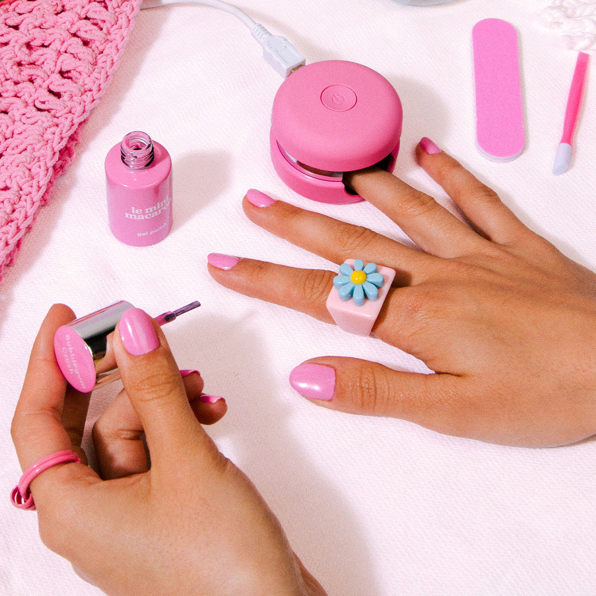 Le Mini Macaron er udviklet 100% til hjemmebrug og udviklet til at gøre det sjovt, sikkert og nemt at lave smukke gel polish negle derhjemme. Vores søde LED-lampe, med form som en macaron, sørger for at lakken tørrer hurtigt og sikkert, og der efterlades ikke et fedtet restprodukt, der skal renses af, når du er færdig med gel manicuren.