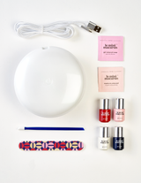 Med vores nye La Nuit Maxi Kit får du alt hvad du behøver for at skabe en smuk og holdbar gelmanicure. Sættet indeholder fire flotte farver, der har hver deres smukke nuance, så du nemt kan finde en farve, der passer til dit outfit eller årstiden. De vil også være perfekte til en imponerende gradient. Lampen har en smuk blank, hvid finish.