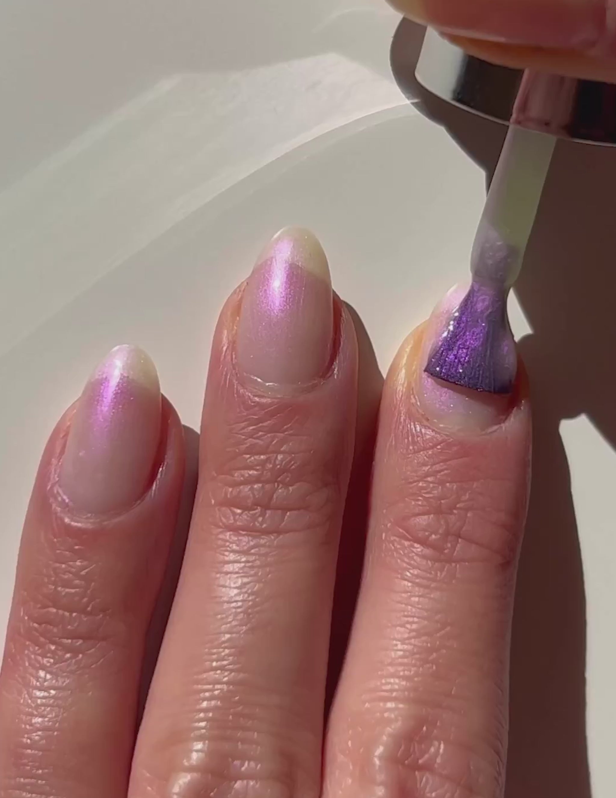 En flot perlemorsfarve*, som diskret giver glans og regnbuefarver til neglene! Lakken er også meget flot ovenpå en anden farve, da den giver et utroligt flot farvespil.