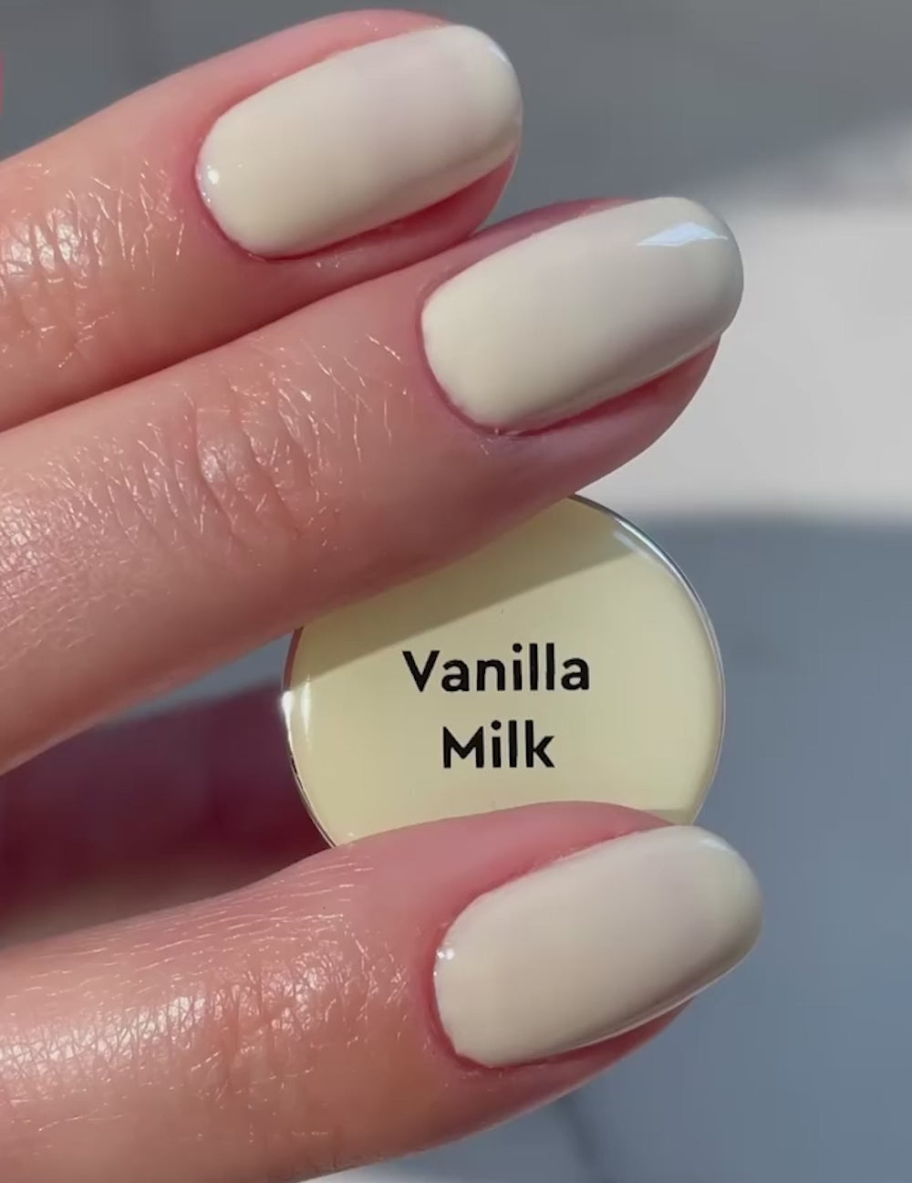 Vanilla Milk er en smuk beige nuance med en varm gul undertone. Denne farve bringer en elegant lethed til dine negle og tilføjer et strejf af varme til dit neglelook.